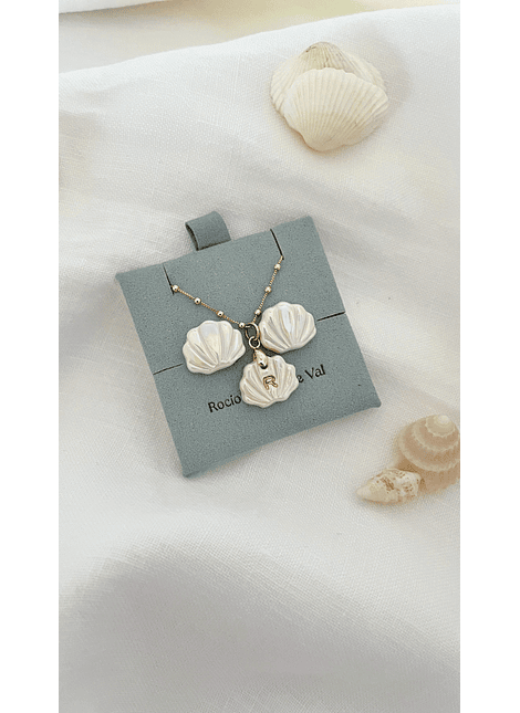 Inspirado en la belleza del océano, este delicado set de la Colección Sirena combina la suavidad de las conchas marinas con la sofisticación de materiales premium. Perfecto para lucir tu inicial de manera elegante y femenina.